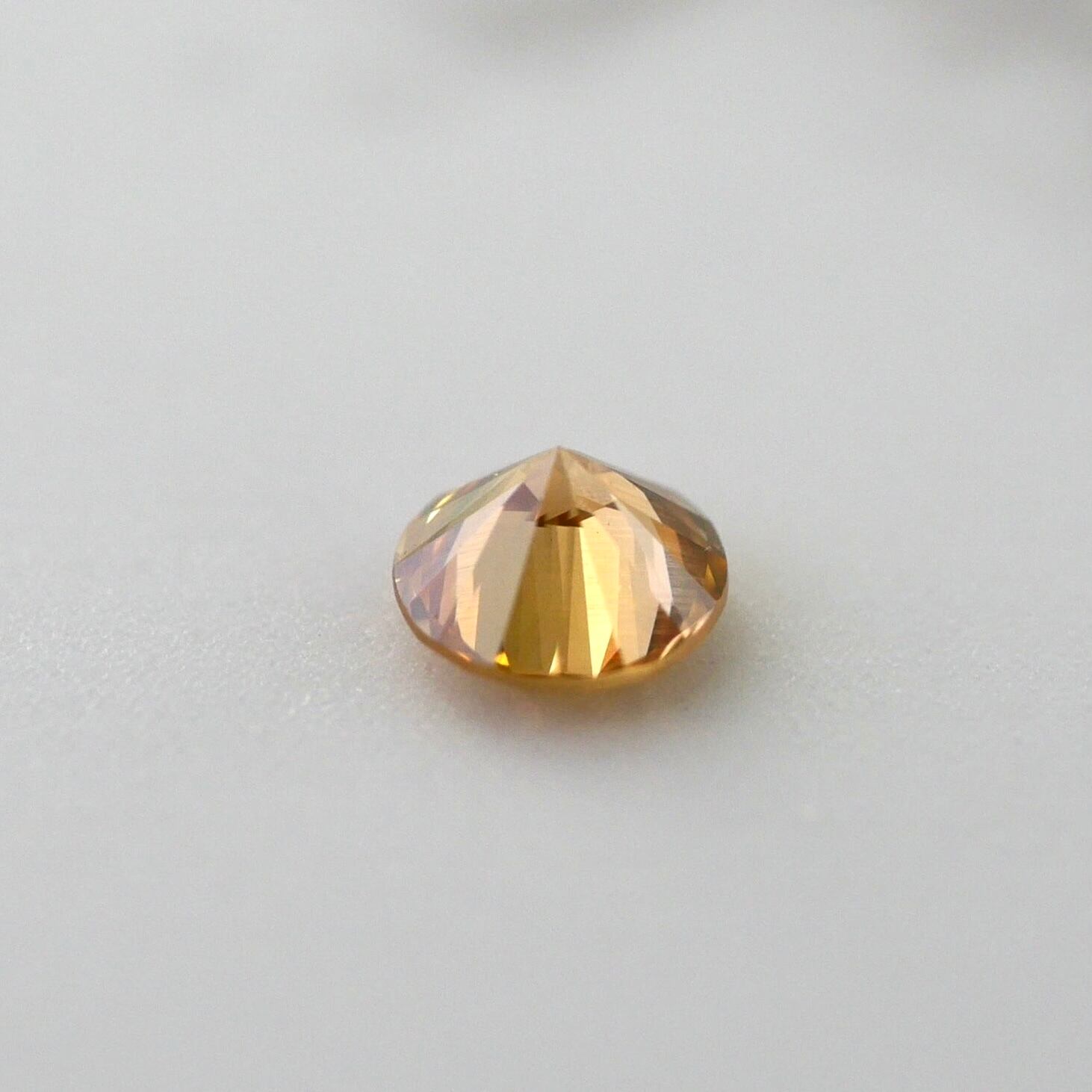 「FANCY DEEP BROWNISH ORANGY YELLOW」は、濃密で深いイエローをベースに、オレンジとブラウンが混ざった温かみと落ち着きを持つ色味が特徴です。光の加減やカットによっても印象が変わり、非常に奥行きのある美しさを楽しめる希少なカラーダイヤモンドです