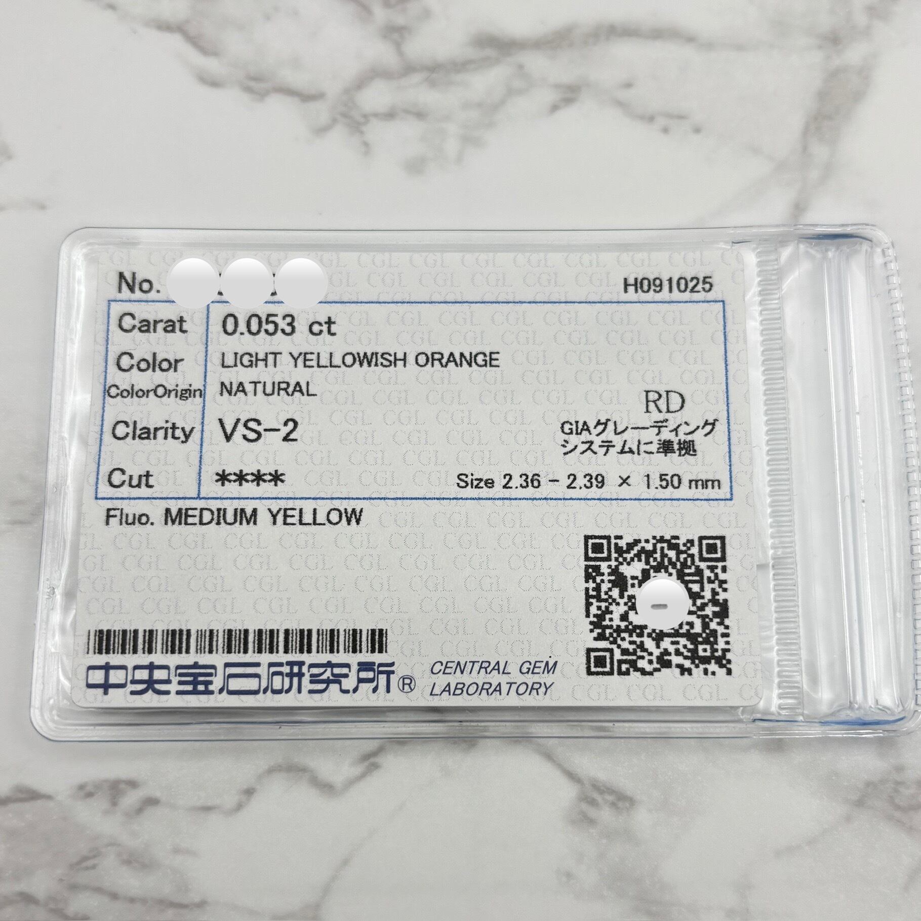 【希少カラー】0.053ct 天然オレンジダイヤモンドルース LYO VS-2 CGLソ付
