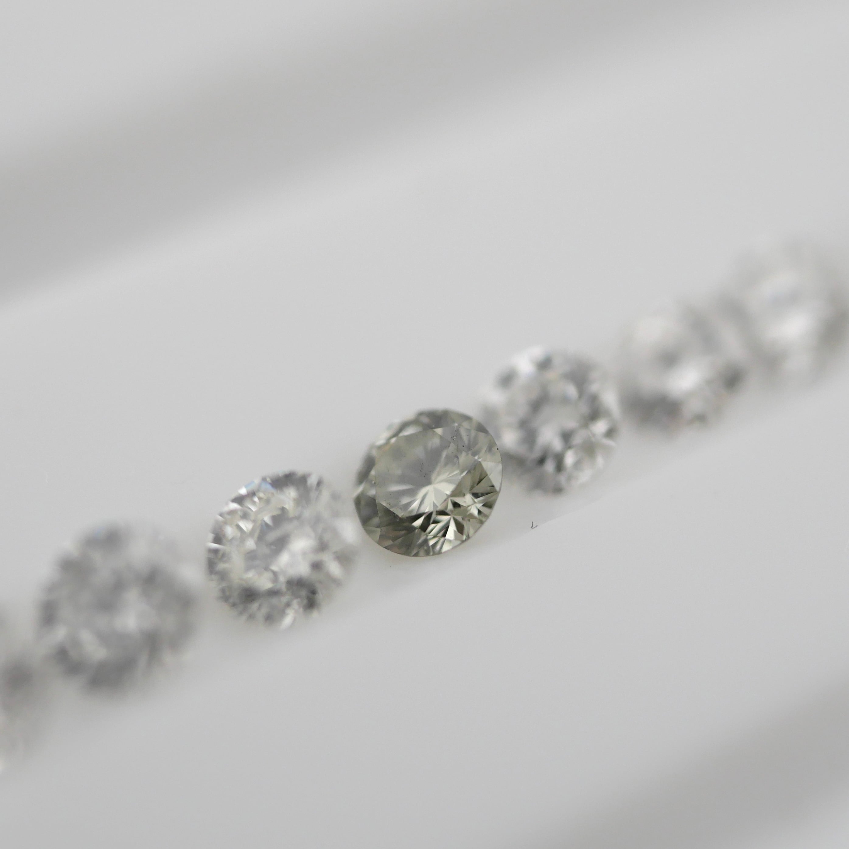 ラウンドブリリアントカットで仕上げられ、美しさを引き出しています。
