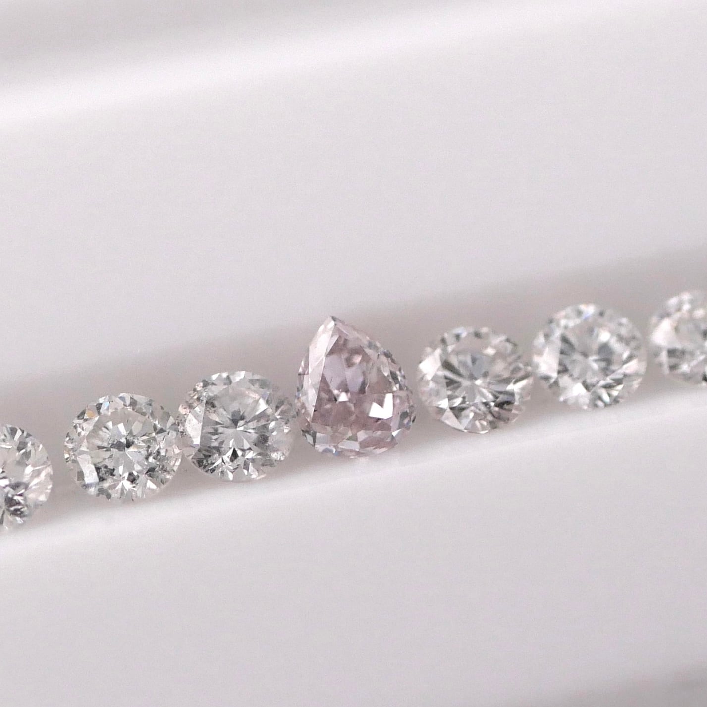 ブラウンを少し含むピンクダイヤは、純粋なストレートピンクに比べて落ち着いた価格帯になりやすく、その分サイズや色味とのバランスで選びやすいカテゴリーとされています。