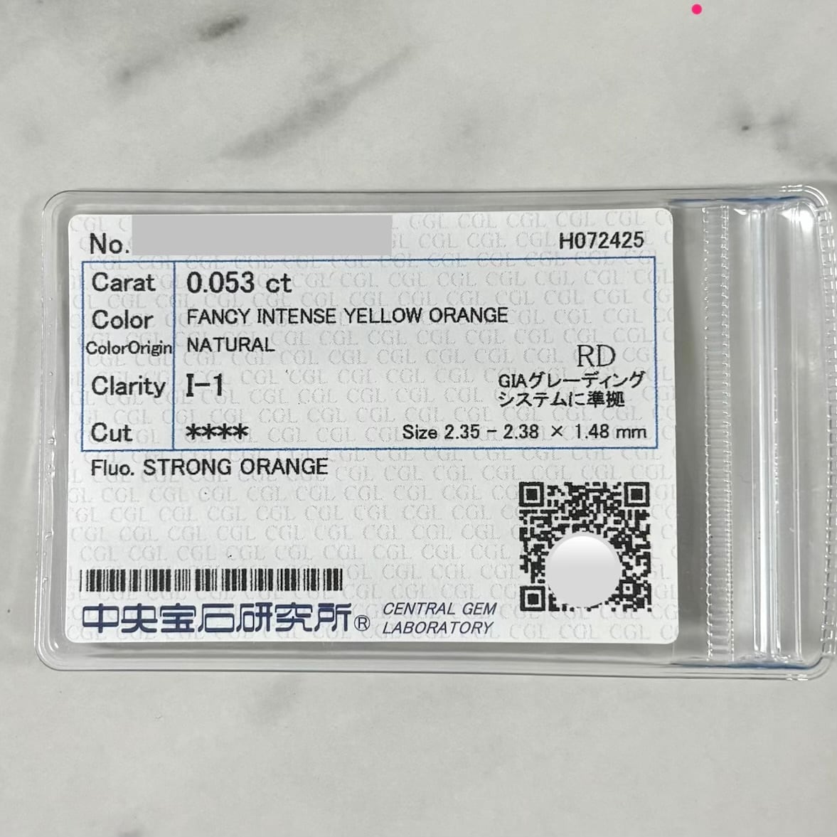 【Intense×強オレンジ蛍光】0.053ct 天然オレンジダイヤモンド ルース FIYO CGL ソーティング 裸石