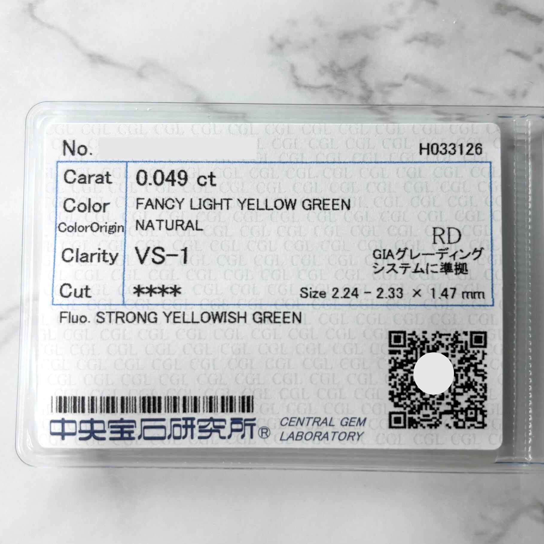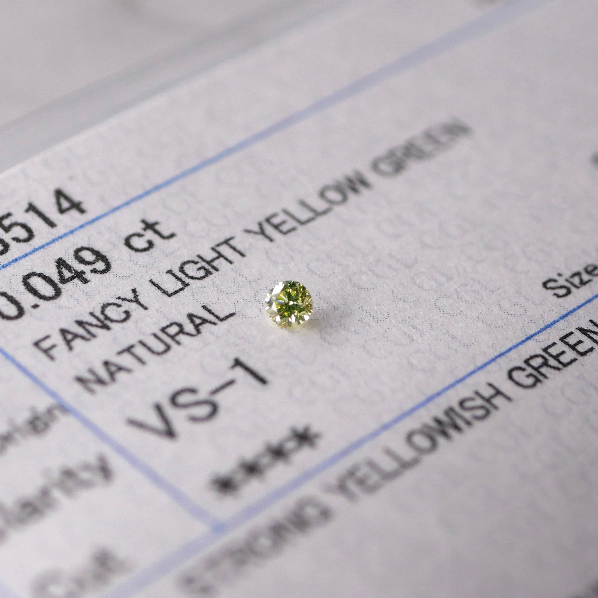 【VSグリーン】0.049ct 天然グリーンダイヤモンド ルース VS-1 Fancy Light Yellow Green 裸石 CGL ソーティング付